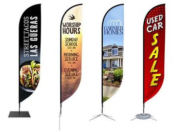 Check out the teardrop flags we offer. These can add a lot of visual attention at your business location. Give us a call for pricing.