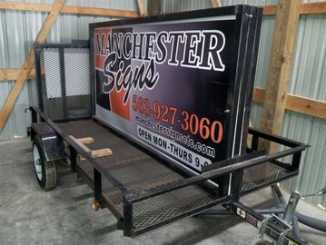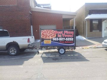 Do you have to come up with a way to promote your event, or address an issue? Then we have the answer, we have two rental trailers for your advertising needs. These can be rented by the day, week, or month. Our designers will work with you to get your message or advertising on to the two 4'x8' panels for maximum exposure for you. These are perfect for parades, small local events that you have to get the word out quickly with a low cost for your budget.